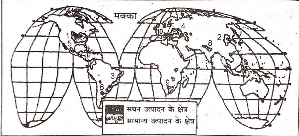 प्रश्न – मक्का (Maize) की खेती के अनुकूल भौगोलिक परिस्थितियों की विवेचना कीजिए तथा विश्व में प्रमुख मक्का उत्पादन क्षेत्रों की विवेचना कीजिए ।