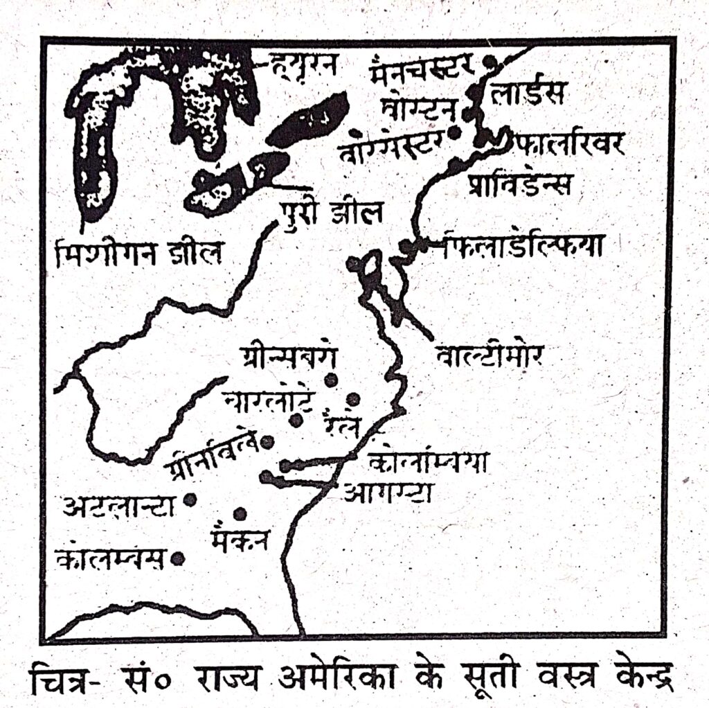 1. न्यू इंगलैण्ड राज्य (New England) : संयुक्त राज्य अमेरिका में यह क्षेत्र सूती वस्त्र उद्योग में अगुआ माना जाता है, क्योंकि यहीं सूती वस्त्र उद्योग का शुभारम्भ हुआ था। यहाँ सूती वस्त्र निर्माण का केन्द्र द्वीप, कनेक्टीकट, मैसाचुसेट्स तथा न्यू-हेम्पशायर क्षेत्रों में है। इस क्षेत्र के अन्य क्षेत्र न्यू वेडफोर्ड, लारेन्स, मानचेन्टसर, फालरिवर, प्राविङेन्स, लावेल, बोस्टन आदि है।