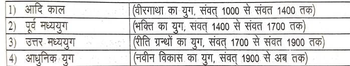 - इन्होंने हिन्दी साहित्य के इतिहास को निम्नलिखित ग्यारह शीर्षकों के अन्तर्गत विभाजित किया है—